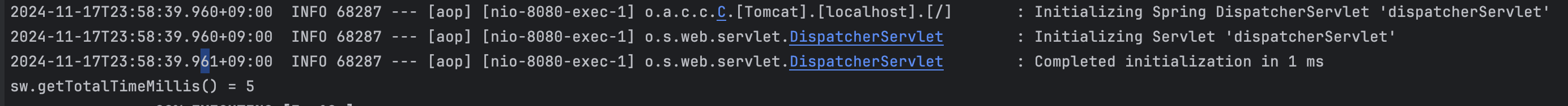 Bean이 아닌 순수 자바 객체에도 Aspect가 잘 적용 된 것을 알 수 있다.